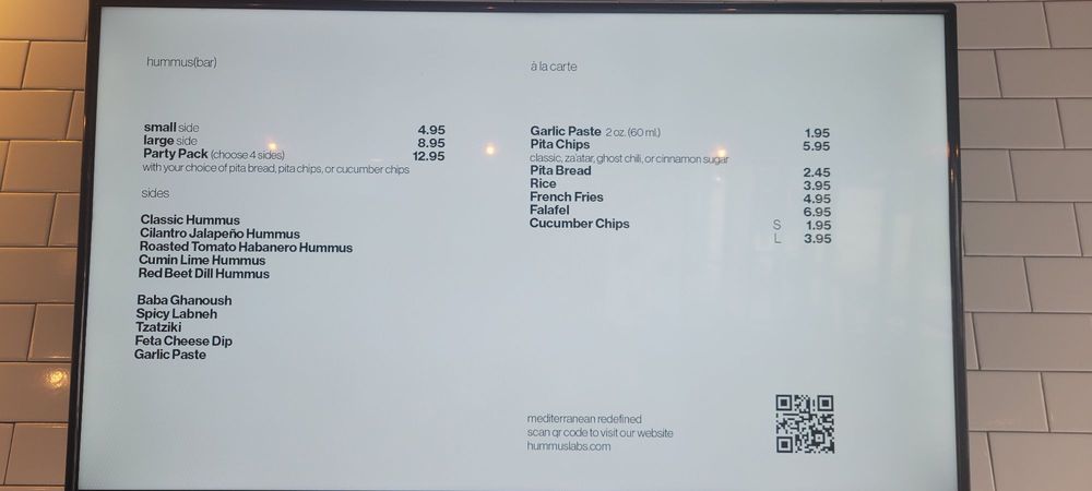Customer feedback reflects an attentive and friendly service team ready to assist you in navigating the extensive menu. Whether it's suggesting the Ultimate Combo for those indecisive moments or offering insights on which hummus to pair with your platter, the staff at Hummus Labs ensures a seamless and enjoyable experience.